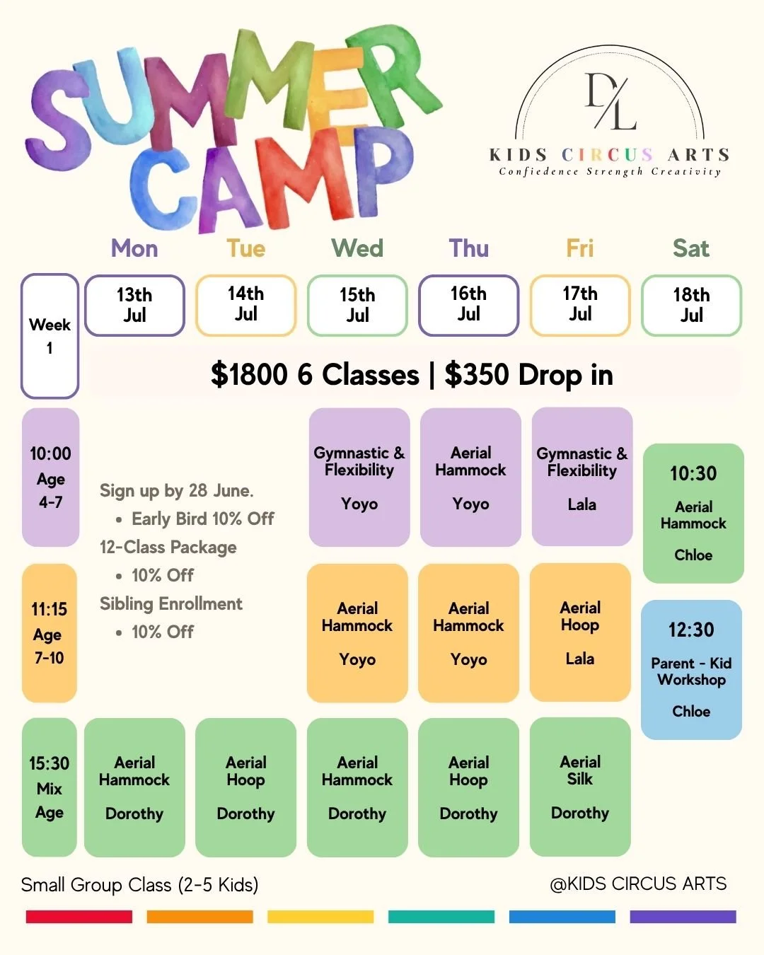 Early Bird: 10% OFF (sign up by the deadline shown on the schedule poster)
